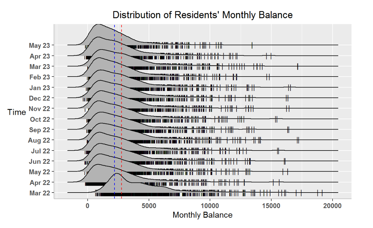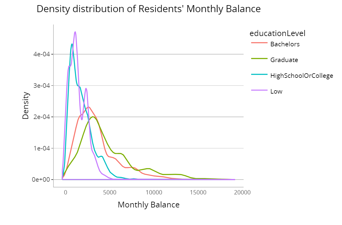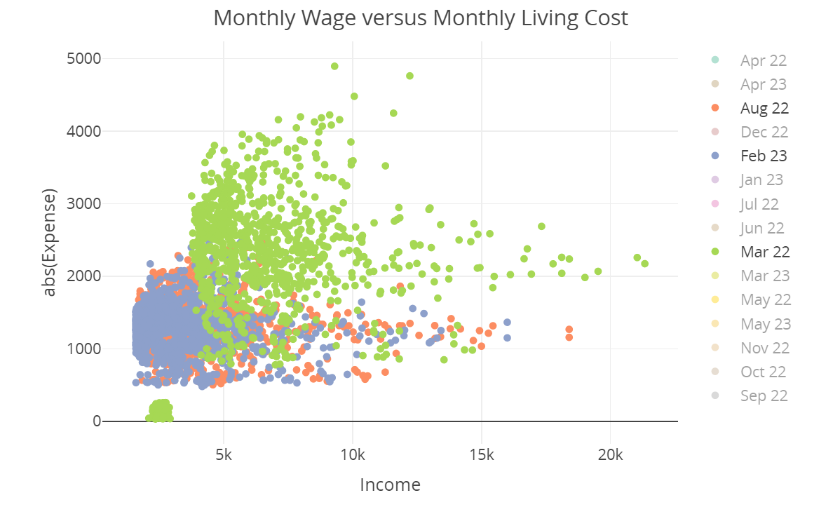 By plotting each individual’s income/expense/balance, we can better evaluate each residents’ financial health.