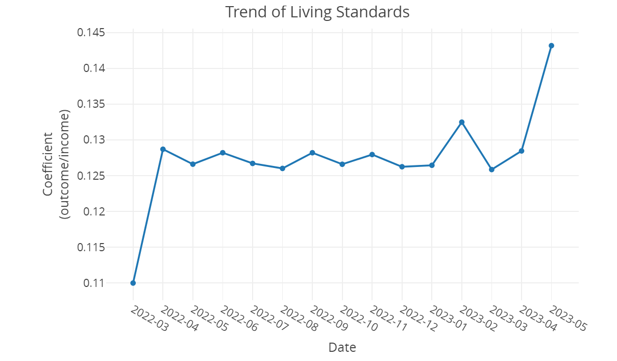 How is the expense distributed during this period? Is expenditure on recreation/food increase? Expenditure is another way to understand the financial health and people’s living standard .