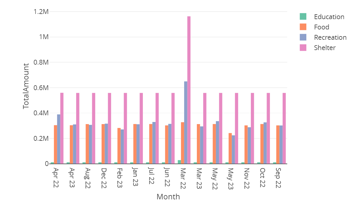 We need to extract residents’ consumption in different aspects from the FinancialJournal.csv, and get the insight by calculating monthly income and expense.